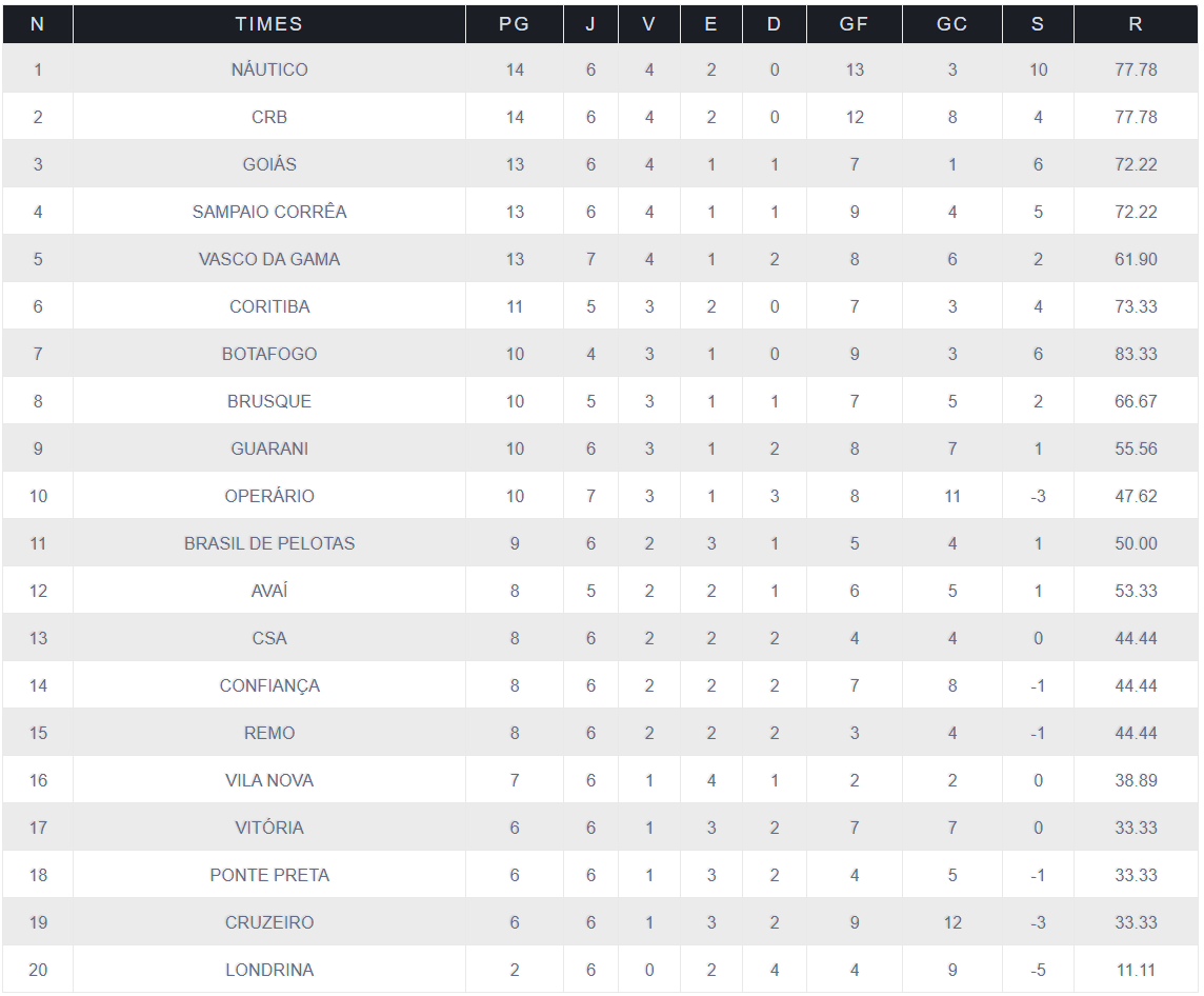 Passadas 12 rodadas do Brasileiro da Série B, o Vasco tem a 5ª melhor campanha como mandante e está em 13º lugar como visitante.