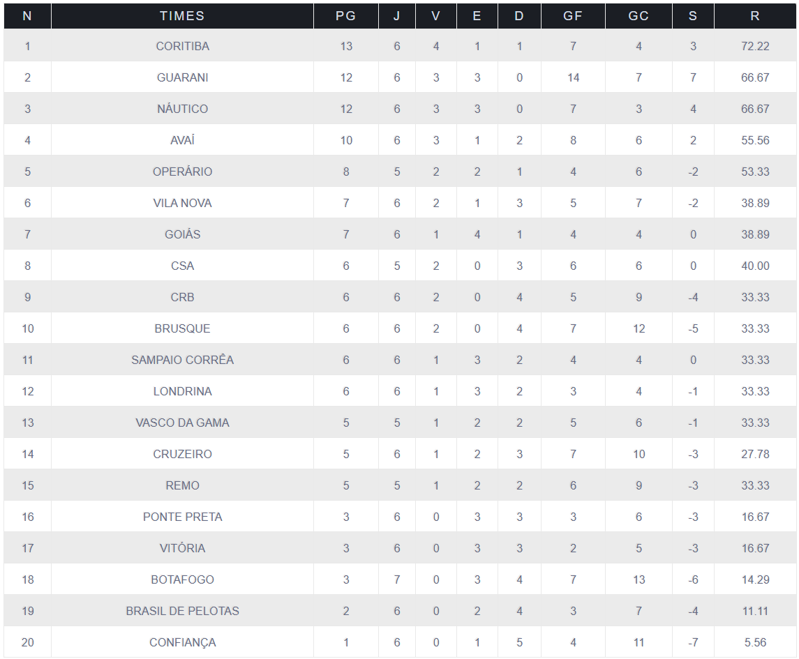 CLASSIFICAÇÃO COMO VISITANTE SÉRIE B