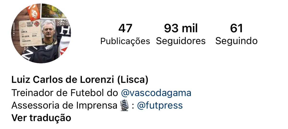 BOMBOU! Após anúncio do Vasco, Lisca ganha mais de 24 mil seguidores em sua conta no Instagram. O técnico saltou de 69 mil para 93 mil. 📲