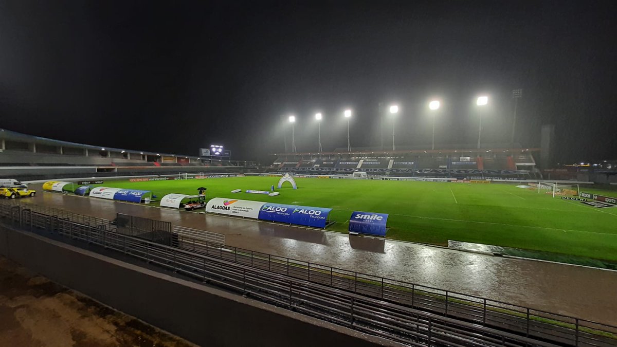 Chove neste momento no Estádio Rei Pelé; veja foto
