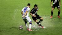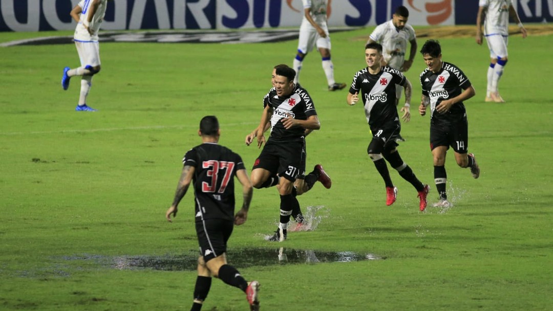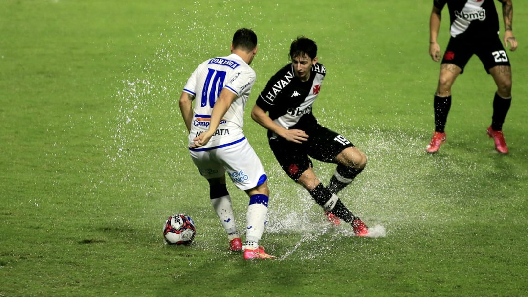 A chuva que caiu pouco antes da partida fez o gramado ficar com muitas poças. O Vasco se adaptou rápido e abriu o placar com quatro minutos. Germán Cano arriscou de fora da área e viu Lucas Frigeri dar rebote. Gabriel Pec apareceu e tocou para Marquinhos Gabriel empurrar para a rede.