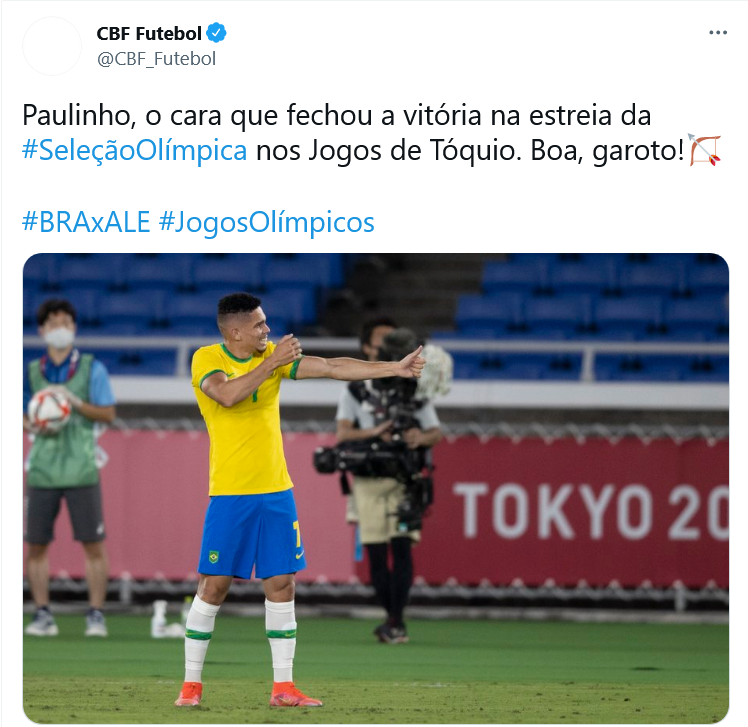 Vasco celebra o gol de Paulinho pela Seleção Olímpica contra a Alemanha: '#RaizÉSerVasco'