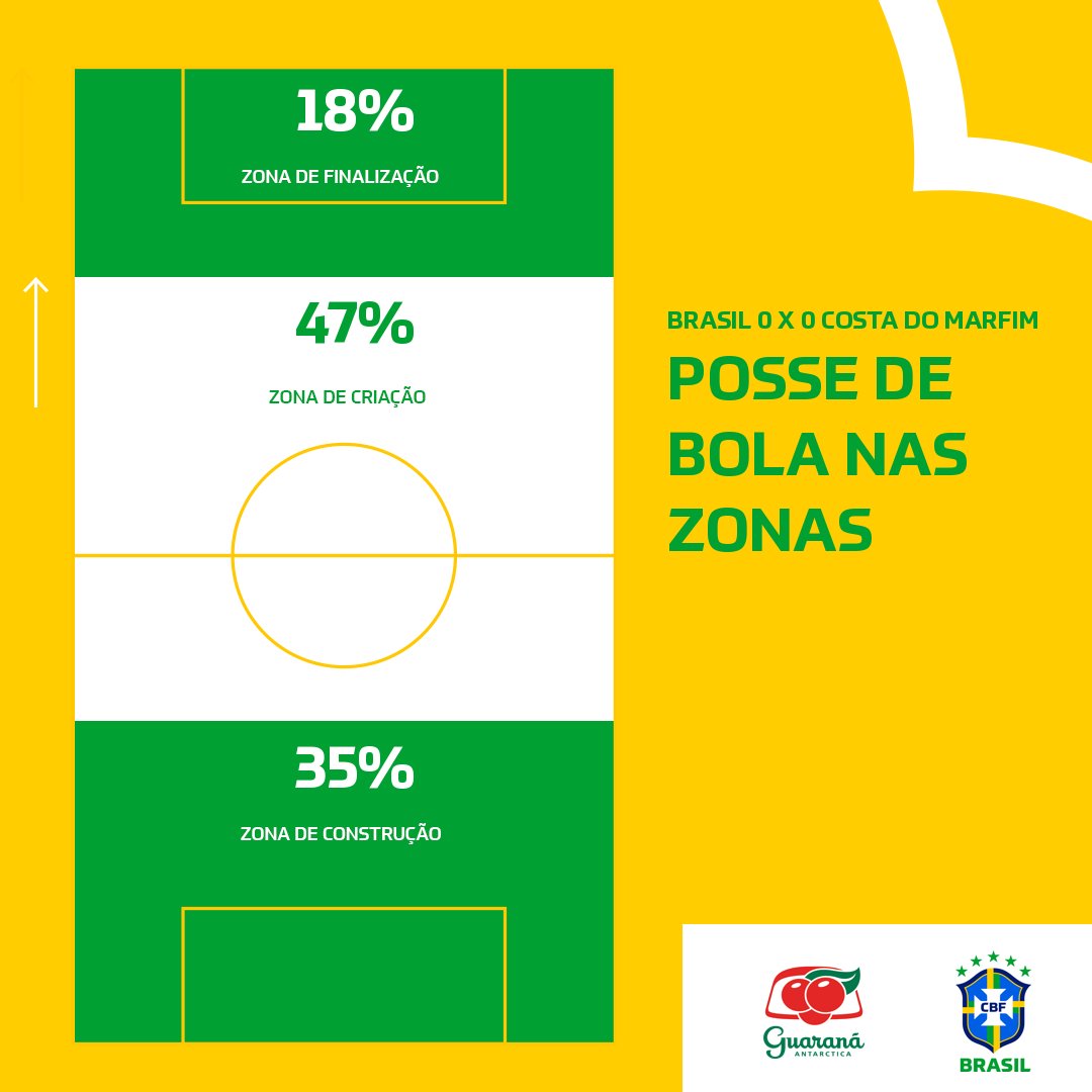 Com um a menos, o Brasil foi para o intervalo sem ter levado perigo ao gol. Do lado da Costa do Marfim, a principal chance veio com Kessié, que recebeu passe dentro da área e finalizou para defesa de Santos. O goleiro também trabalhou em chute de fora da área de Diallo.