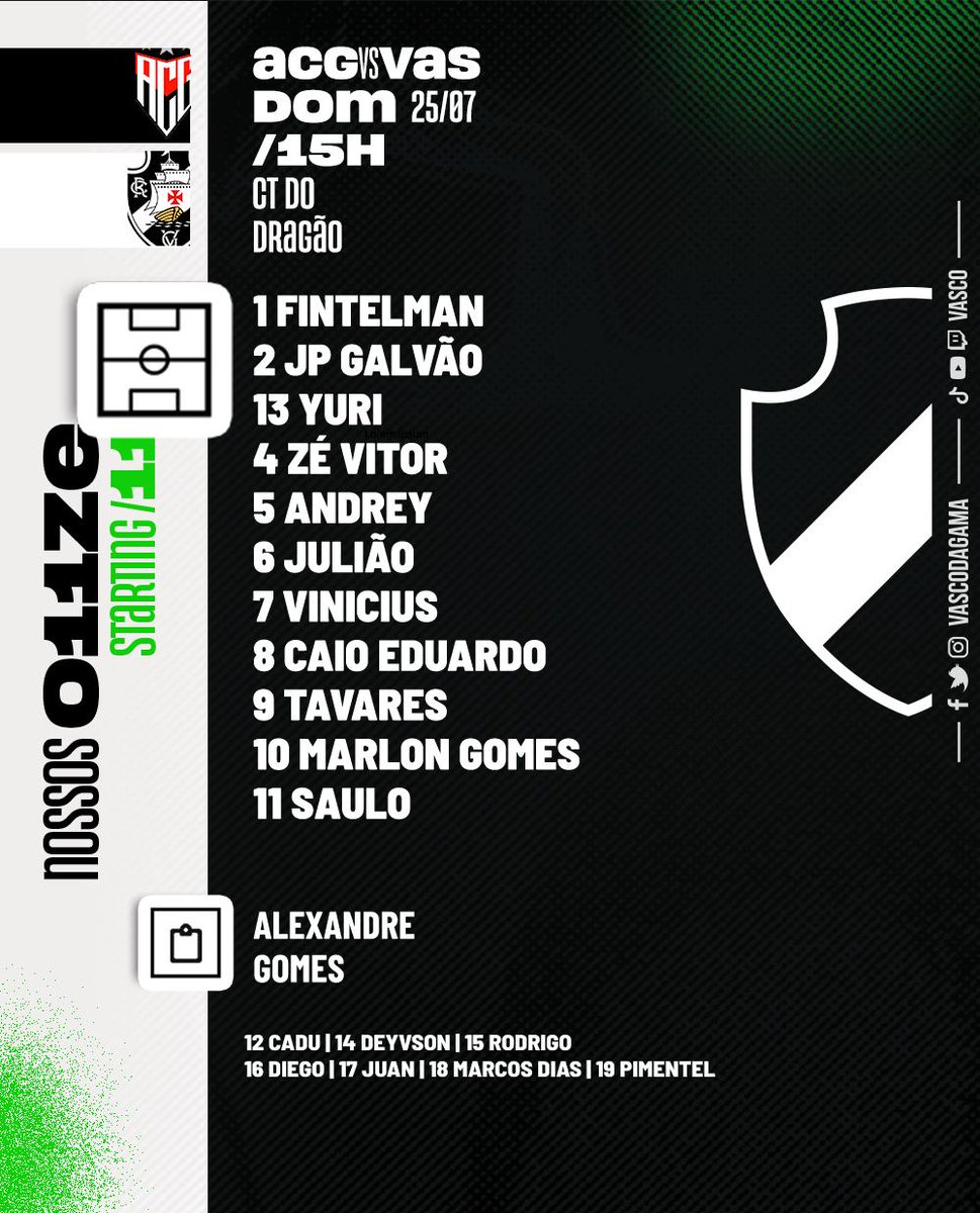 Juniores: Veja a escalação do Vasco para o jogo contra o Atlético-GO