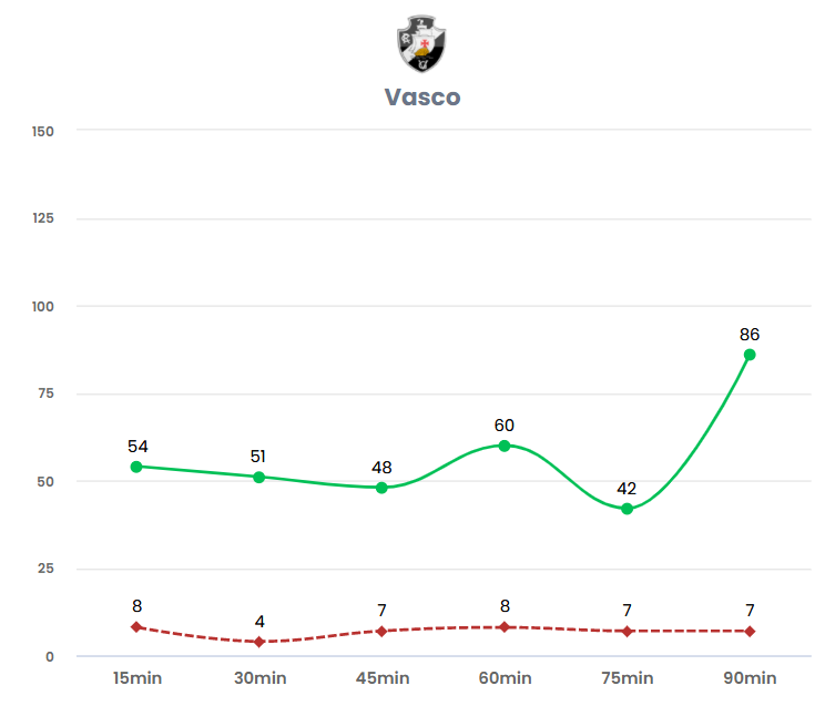 Ontem (24) na partida vitória contra o Guarani por 4x1, o Vasco além de ter voltado a vencer, conseguiu melhorar a sua posse de bola, sendo mais efetivo e convertendo as chances criadas. O Vasco ontem deu 382 passes, sendo 341 certos e 41 errados (89.3%). No 1ª tempo foram 153 passes certos e apenas 19 errados. Já 2ª tempo foram 188 certos e apenas 22 errados. Abaixo, os mapas de interação de passes entre jogadores e a frequência de passes de minuto a minuto.