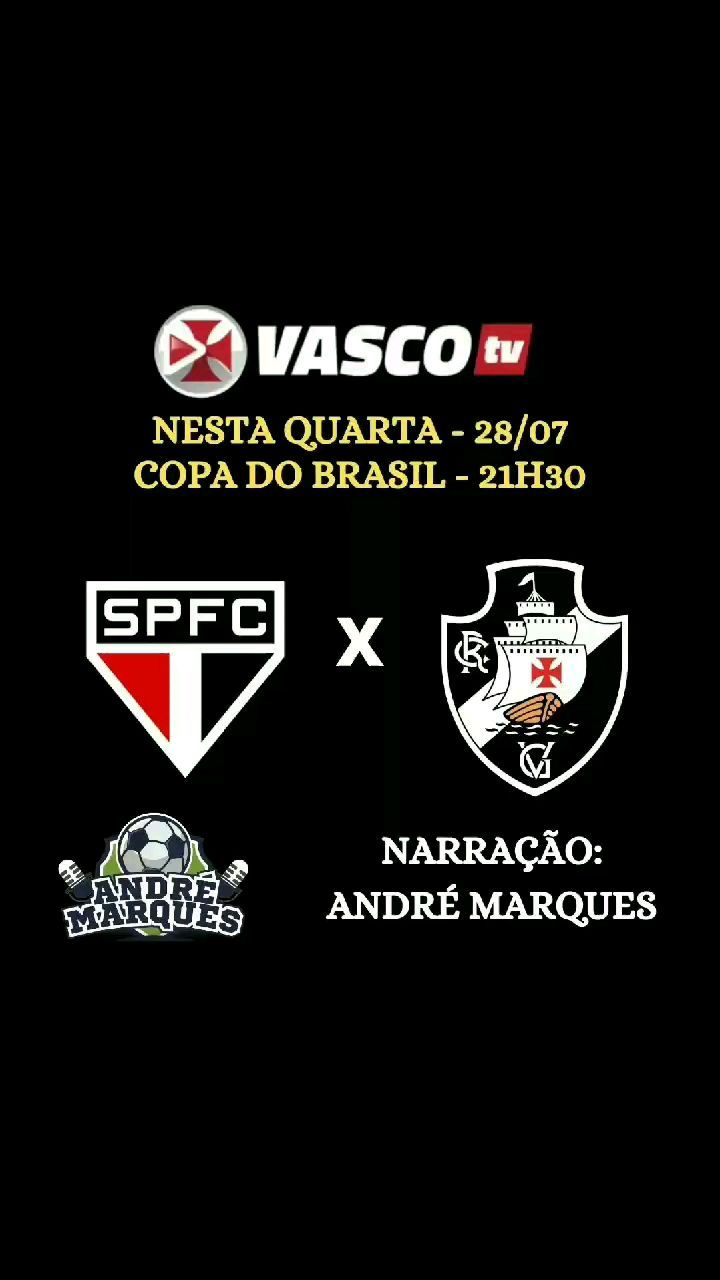 Narro São Paulo x Vasco, pela @copadobrasil, na Vasco TV! 21h30! Conto com a audiência de vocês! Que jogo!
