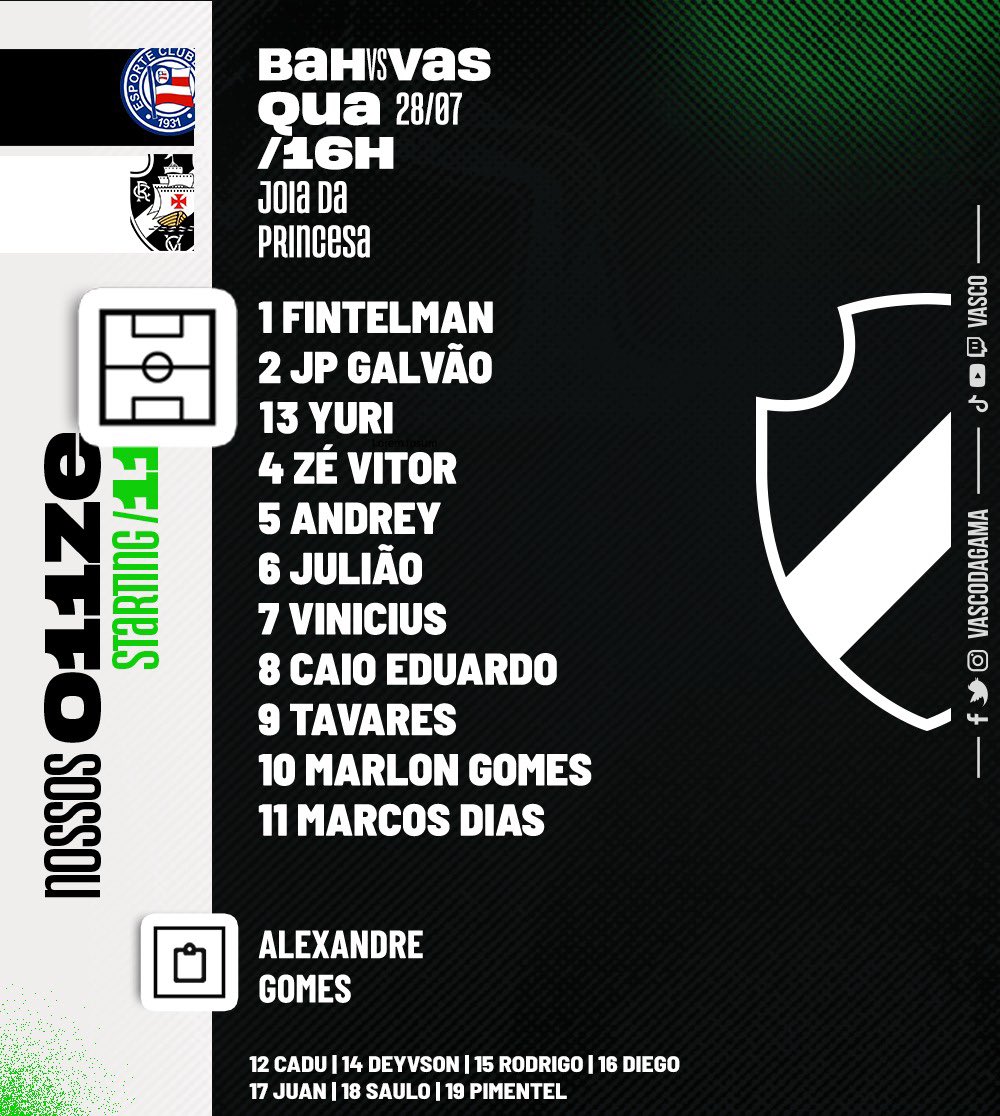 Juniores: Confira a escalação do Vasco para o jogo contra o Bahia
