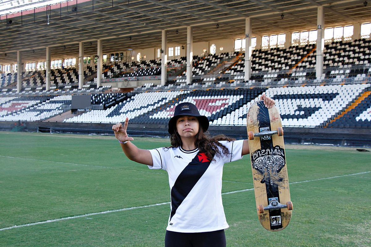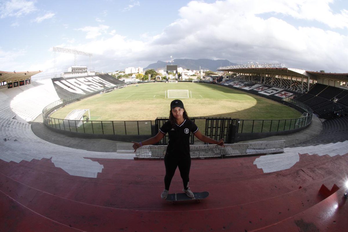 Skatista Giovana Moreira, da Seleção Brasileira, visitou São Januário; veja fotos