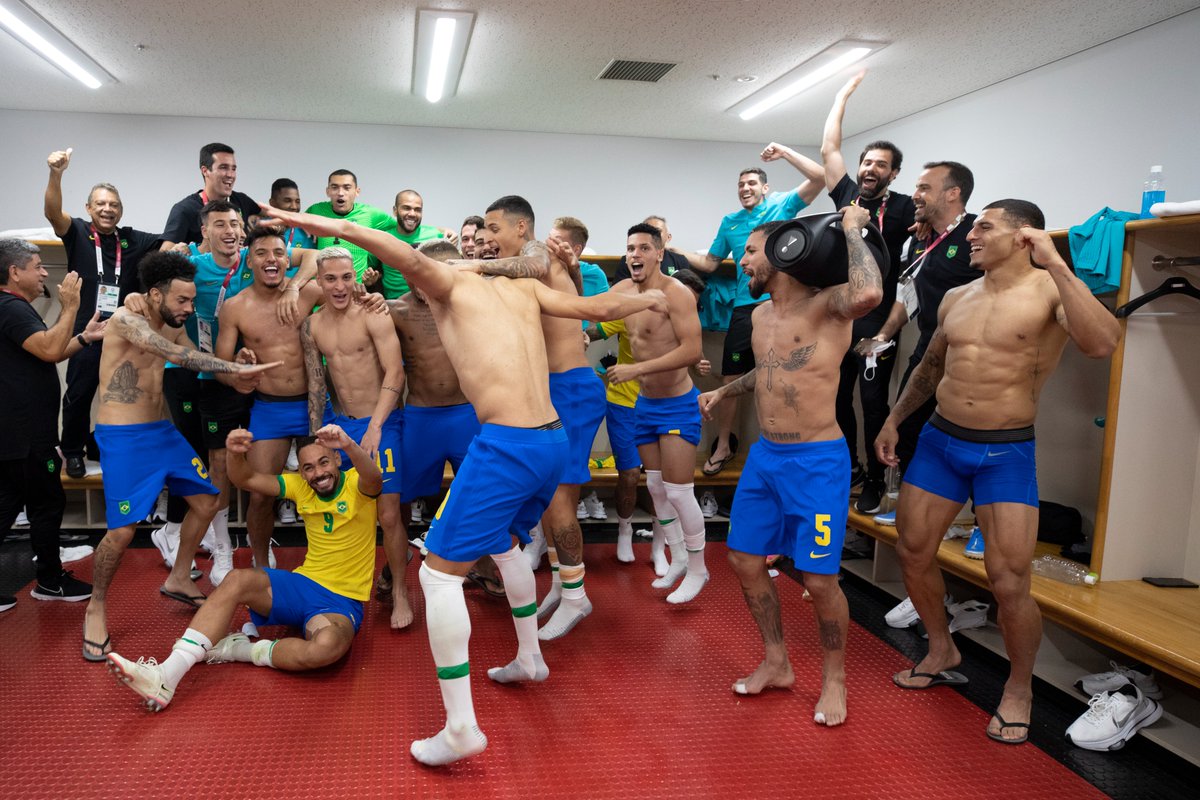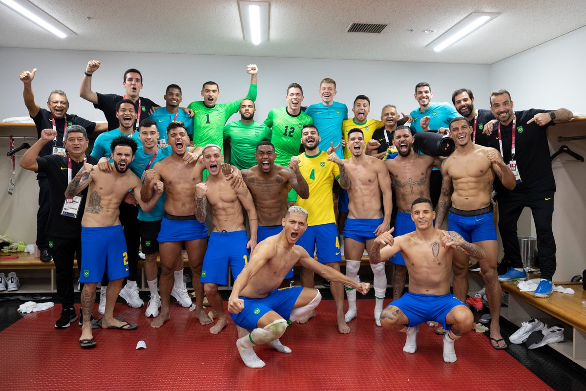 Veja foto dos jogadores da Seleção Olímpica comemorando a classificação para a semifinal
