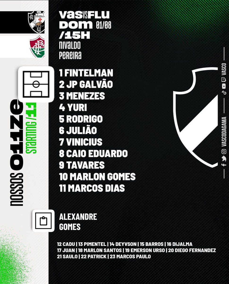 📋 Vasco está escalado para enfrentar o Fluminense pelo Brasileiro Sub-20!