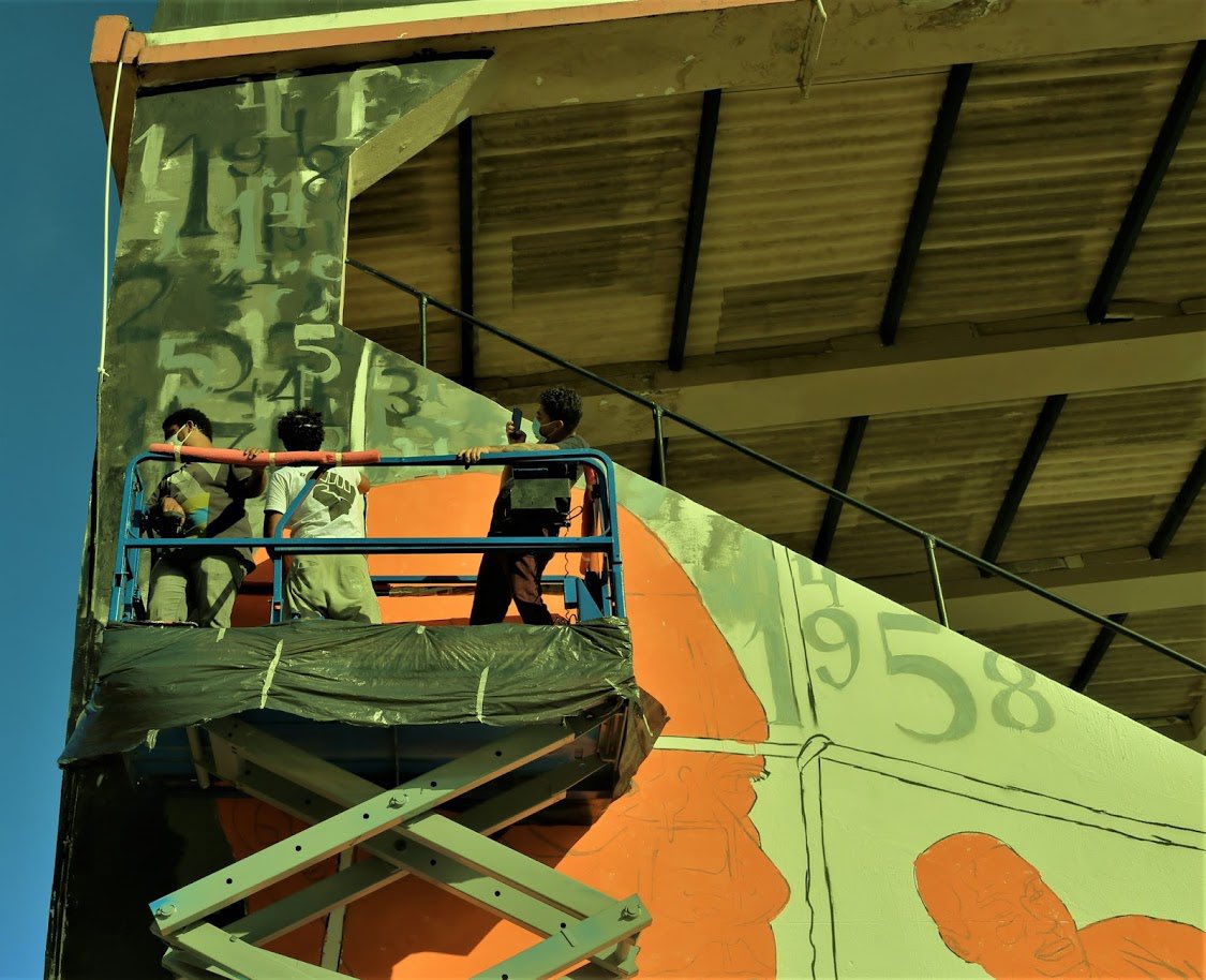 Veja fotos dos processos do grafite em homenagem a Barbosa em São Januário