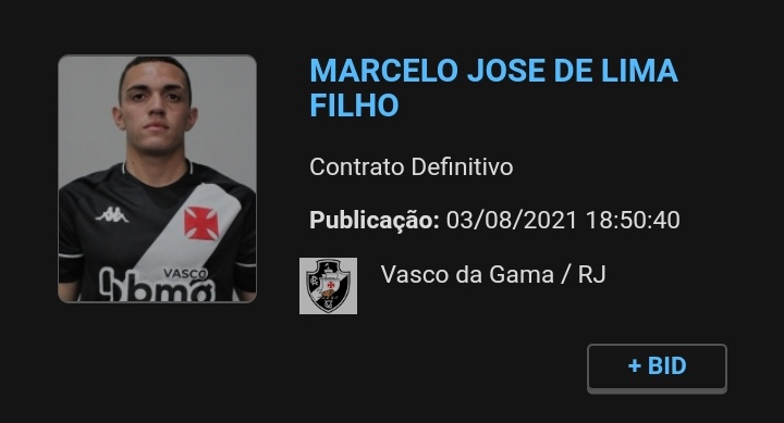 Marcelinho está registrado pelo Vasco no BID da CBF e fica à disposição do técnico Alexandre Gomes para a sequência da temporada.