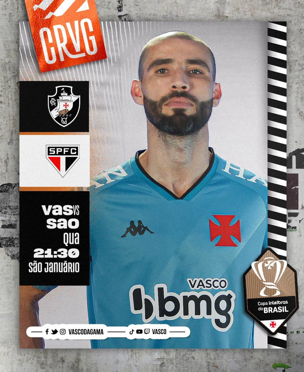 Vasco destaca Vanderlei em imagem de divulgação do jogo contra o São Paulo