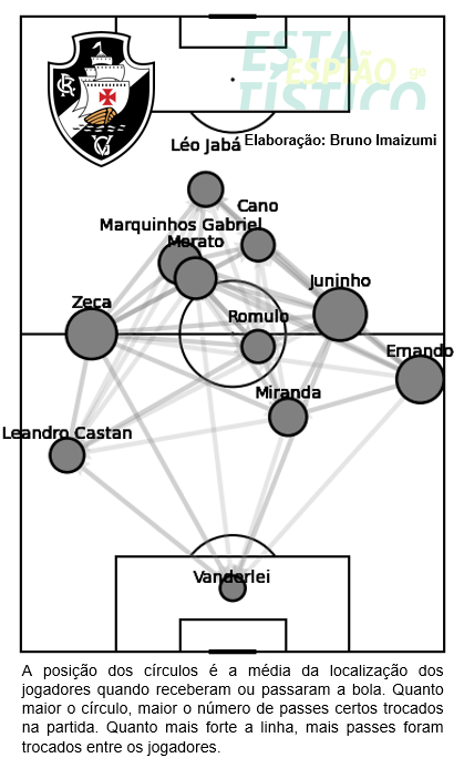 Veja o mapa de passes do Vasco no 1º tempo