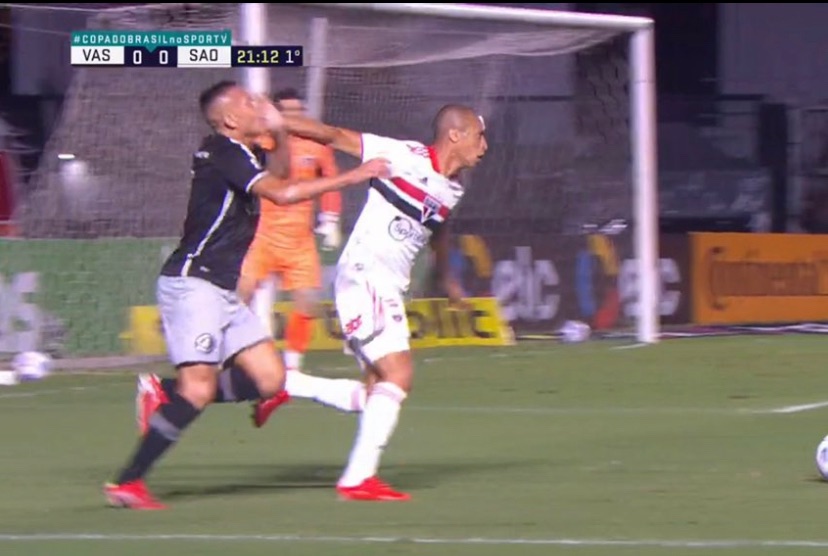 A mãozada de Miranda no rosto de Leo Jabá aos 22m e a entrada de Nestor em Galarza aos 33m do segundo foram faltas dentro da área em lances interpretativos. Mas a torcida do Vasco tem razão em reclamar: a arbitragem de Anderson Daronco há tempos é "confusa" em jogos do clube…