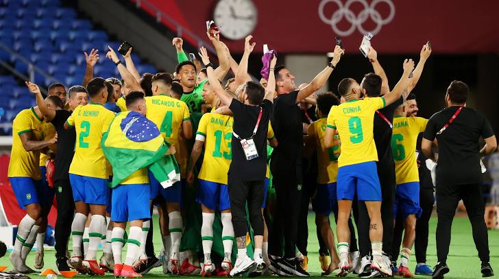 O ouro é nosso! O ponto mais elevado do pódio é brasileiro! Em um jogo de tirar o fôlego no Estádio de Yokohama, neste sábado (7), a Seleção Olímpica Masculina superou a Espanha por 2 a 1, com gols de Matheus Cunha e Malcom, e conquistou a medalha de ouro nos Jogos Olímpicos de Tóquio 2020, a segunda do Brasil na história.