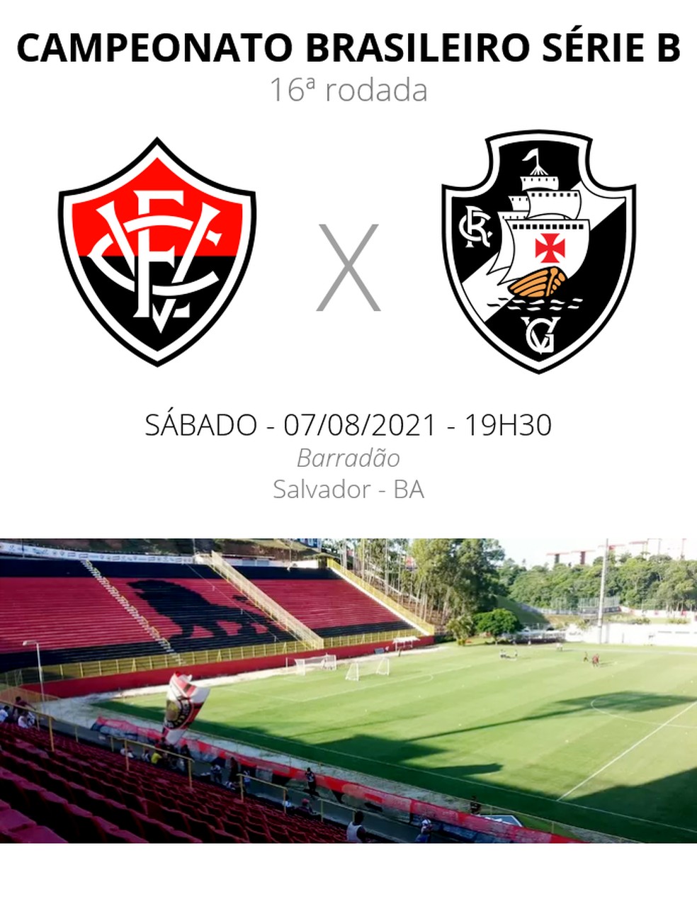 Com focos distintos no Brasileirão Série B, Vitória e Vasco se enfrentam às 19h30 (horário de Brasília) deste sábado, no estádio do Barradão, em Salvador. O duelo é válido pela 16ª rodada da competição.