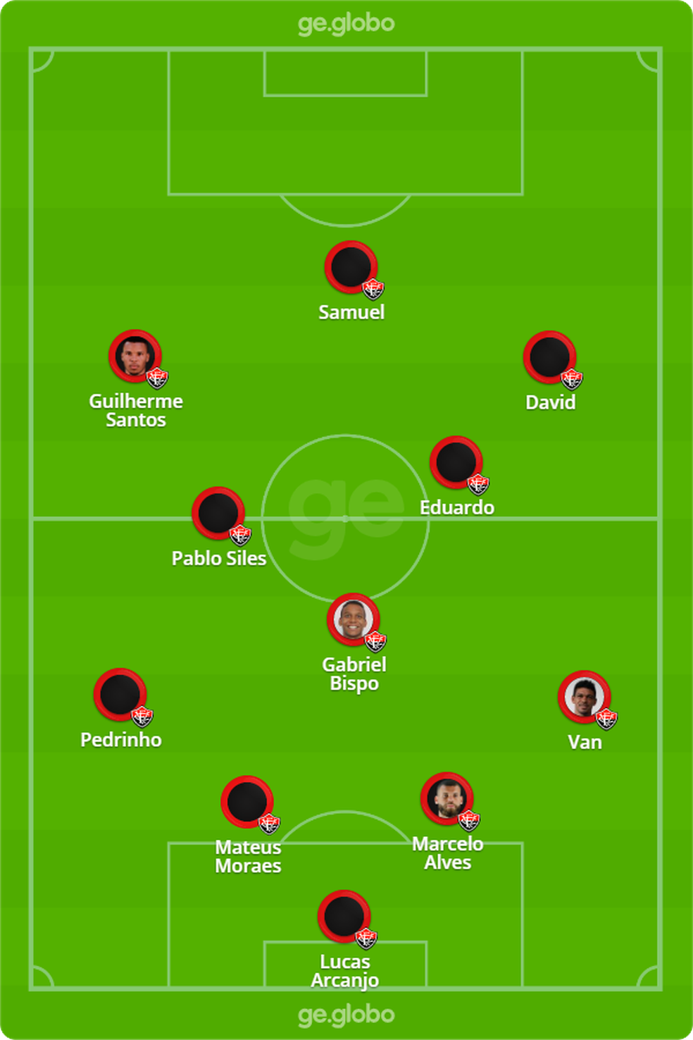Diante de tantas mudanças no clube, a escalação do Vitória para este sábado é um mistério. Uma das escalações prováveis tem a base do time que enfrentou o Grêmio, com Pedrinho na lateral esquerda no lugar de Roberto. Na frente, David, Guilherme Santos e Samuel.