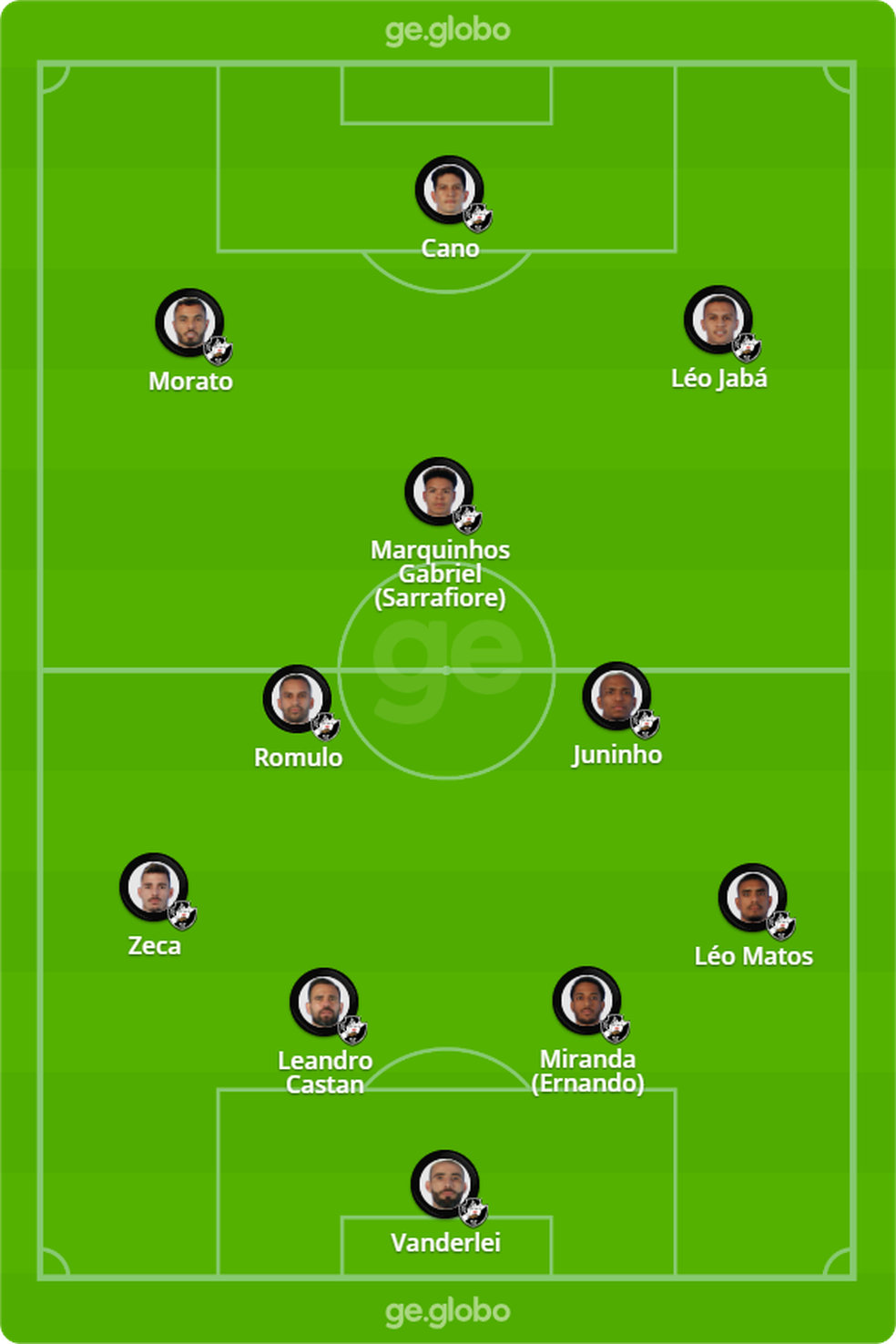 Provável escalação: Vanderlei; Léo Matos, Miranda (Ernando), Leandro Castan e Zeca; Romulo, Juninho e Marquinhos Gabriel (Sarrafiore); Morato, Cano e Léo Jabá.