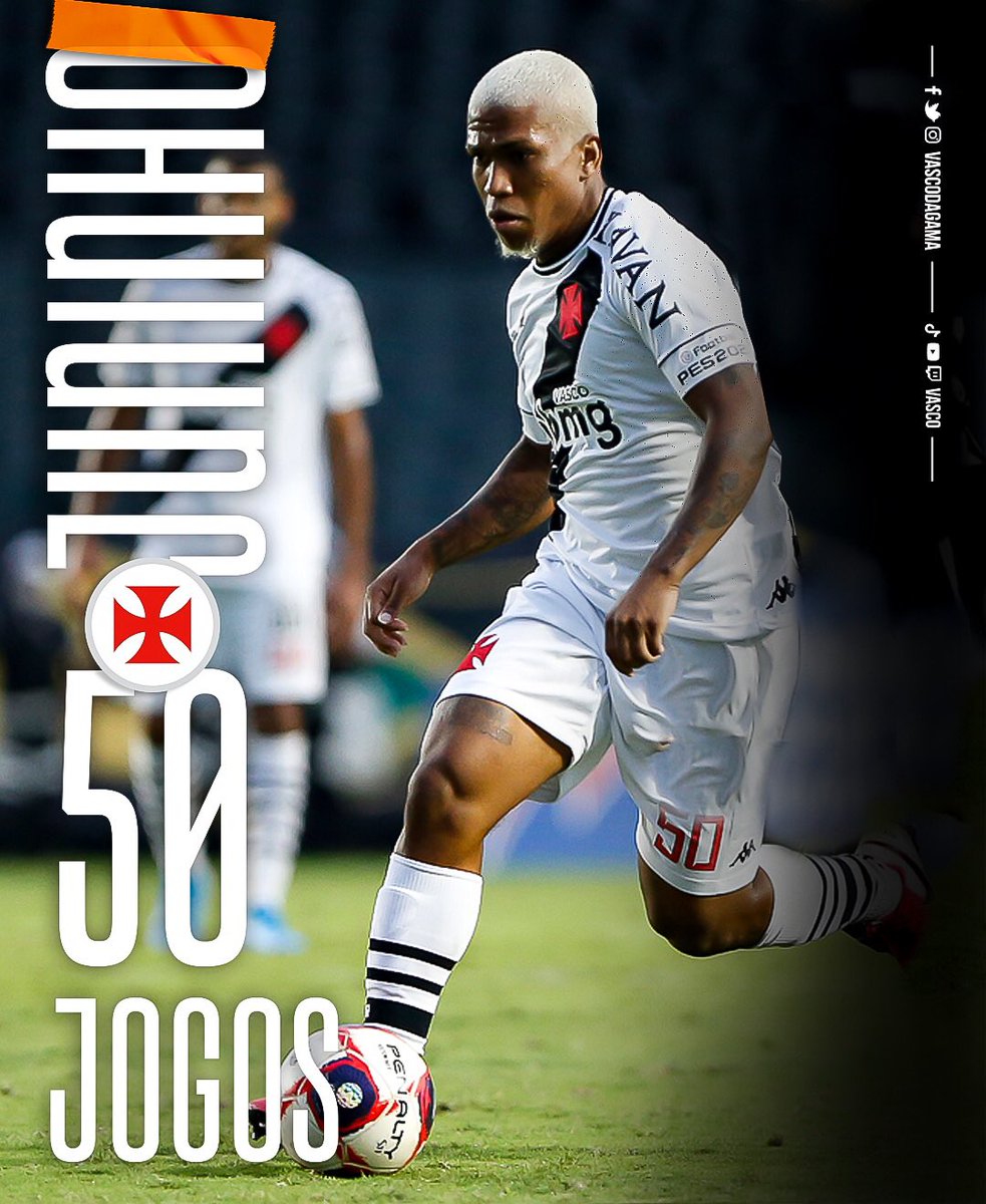 Vasco homenageia Juninho: 'O jovem revelado em São Januário completará 50 partidas pelo profissional em solo baiano'