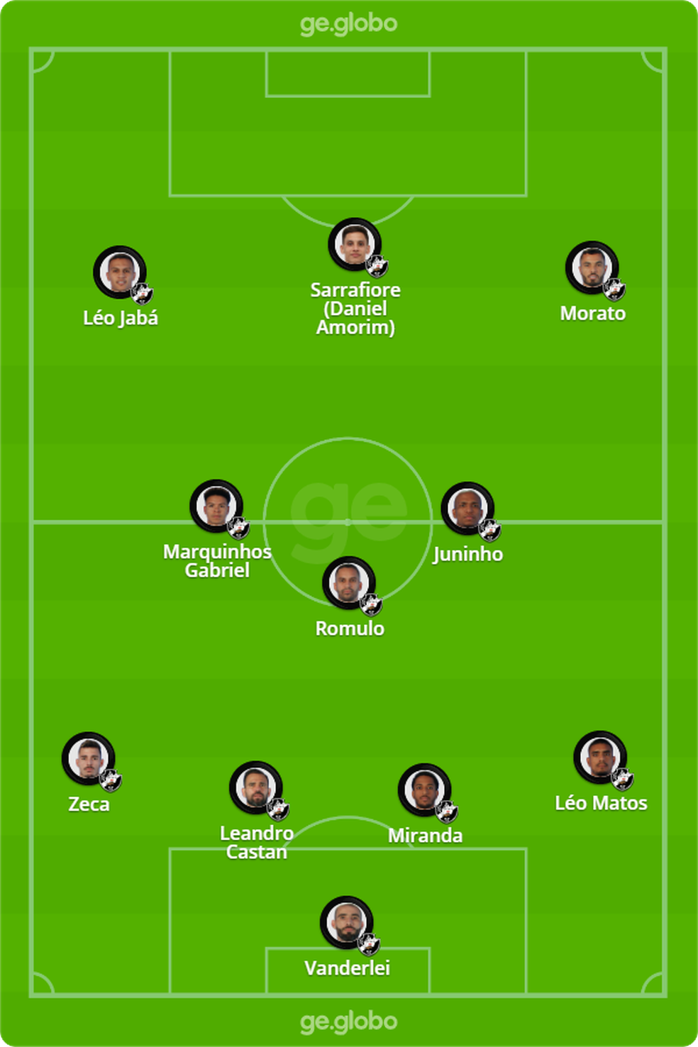 Provável escalação: Vanderlei, Léo Matos, Miranda, Leandro Castan e Zeca; Romulo, Juninho e Marquinhos Gabriel; Léo Jabá, Morato e Sarrafiore (Daniel Amorim).