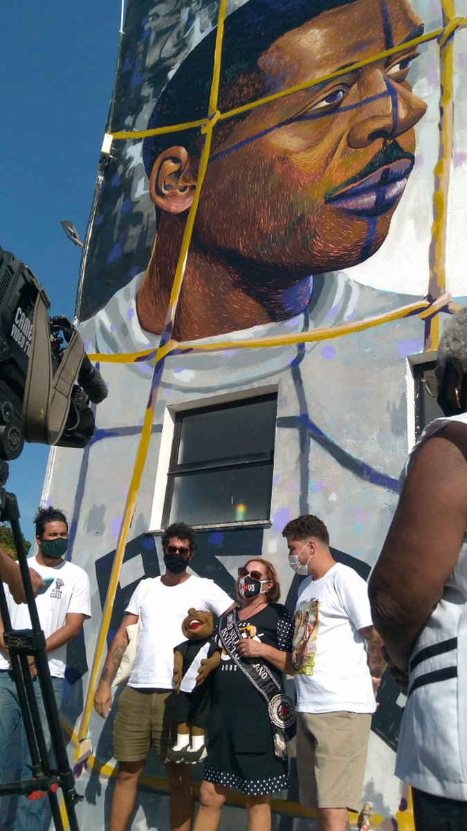 Mais fotos de Tereza Borba Barbosa em frente ao grafite do projeto Negro Muro, em homenagem ao ex-goleiro Moacyr Barbosa.