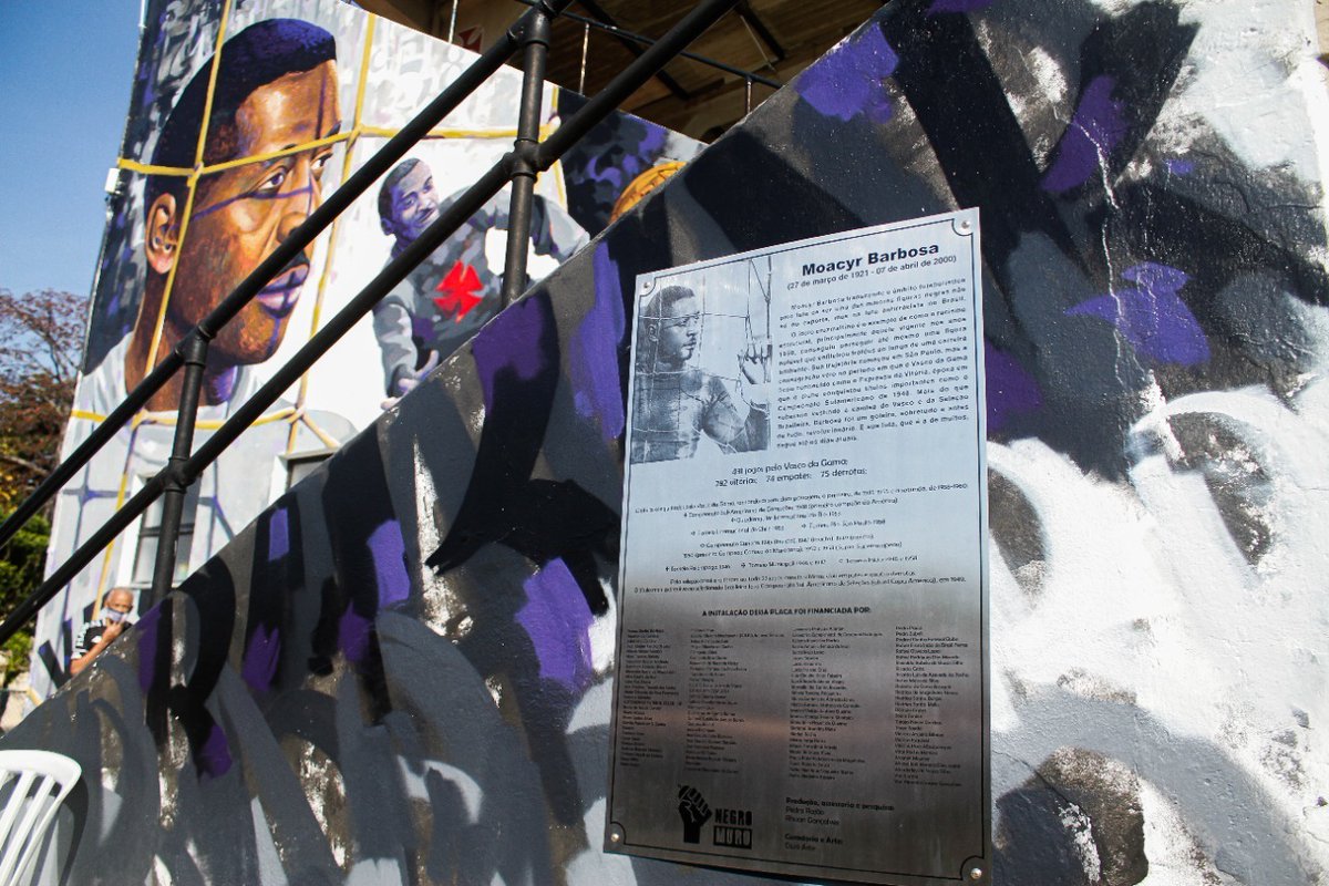 Nesta terça rolou a inauguração do Muro do Barbosa, feito pelo @negromuro_, e contou com a presença da filha do lendário goleiro, Tereza Barbosa. ✊🏿💢