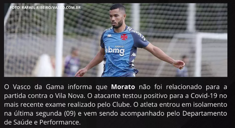 Morato também está fora. Jogador foi diagnosticado com COVID-19.