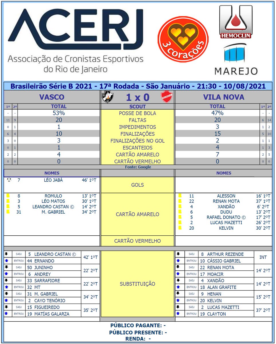Cartões amarelos: Léo Mattos, Leandro Castán, Marquinhos Gabriel e Rómulo (Vasco) e Alesson, Mazetti, Renan Mota, Rafael Donato Xandão, Kelvin e Dudu (Vila Nova)
