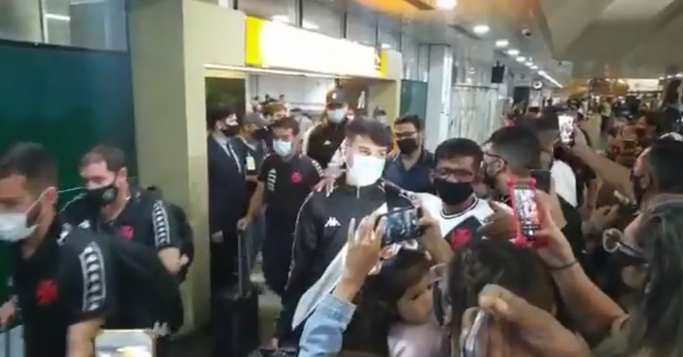 Alguns torcedores acompanharam o desembarque do Vasco. Jogadores, como o volante Romulo, pararam para fotos com as pessoas presentes no saguão. Apesar da pequena aglomeração, sem tumultos, todos usavam máscaras.