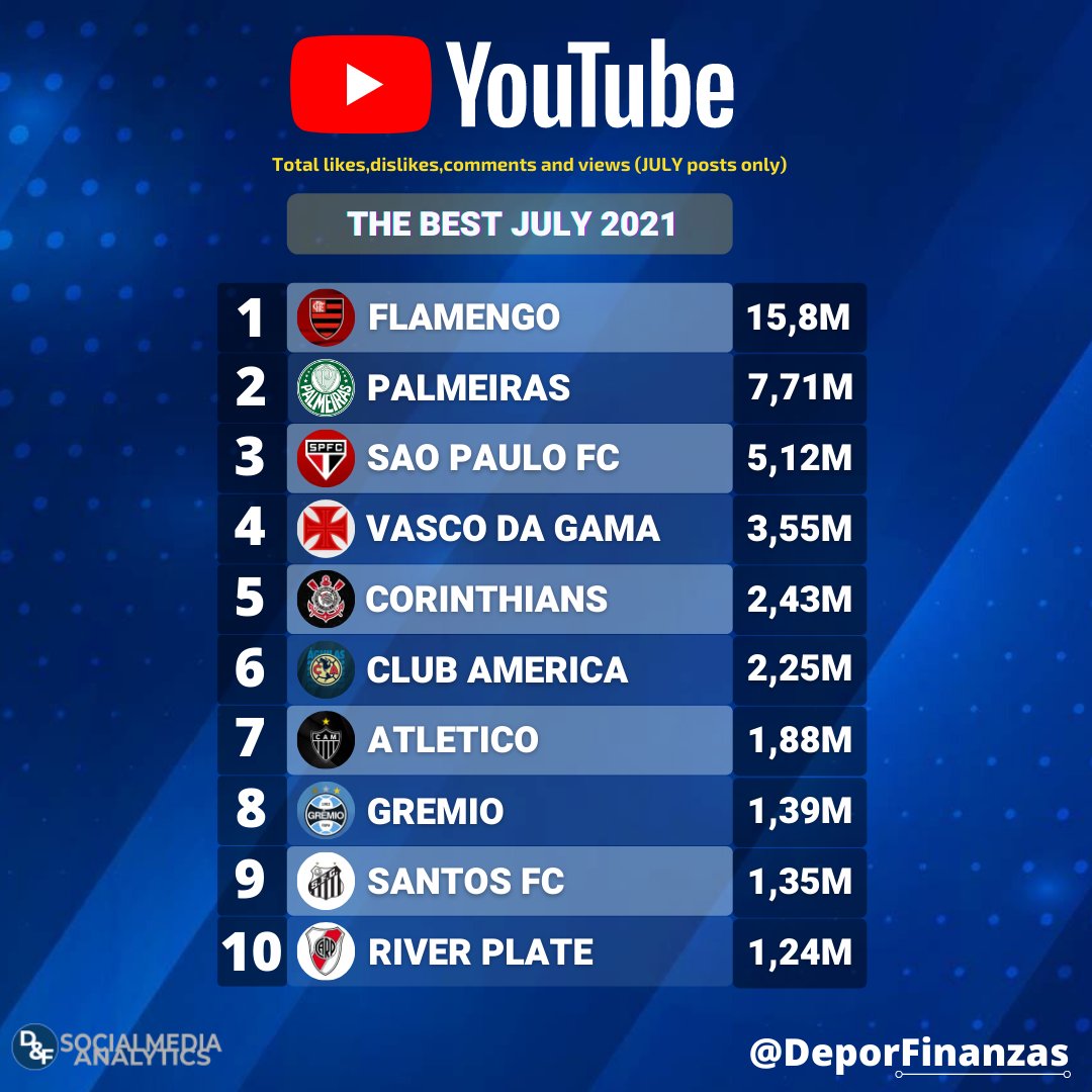 📲⚽ AMERICA ⏯ Best clubs on #YouTube during july 2021!