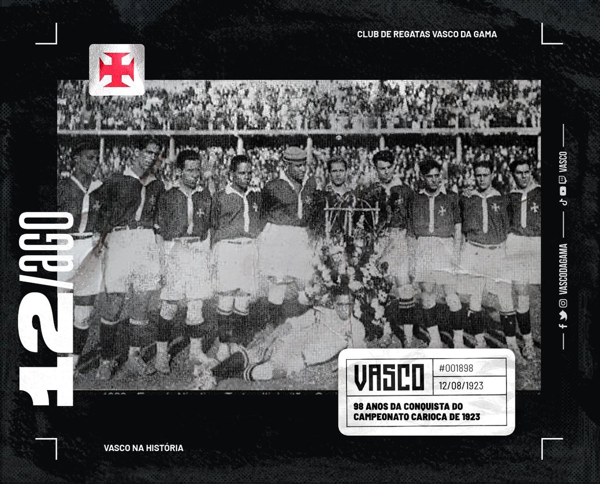 Vasco relembra os 98 anos do seu 1º título estadual: 'Direcionando o futebol para um horizonte mais profissional e inclusivo'