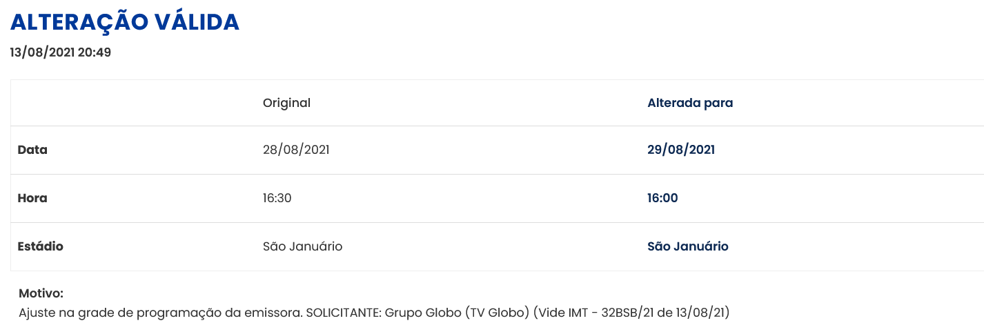 Local: Estádio São Januário, em Rio de Janeiro/RJ (mantido)