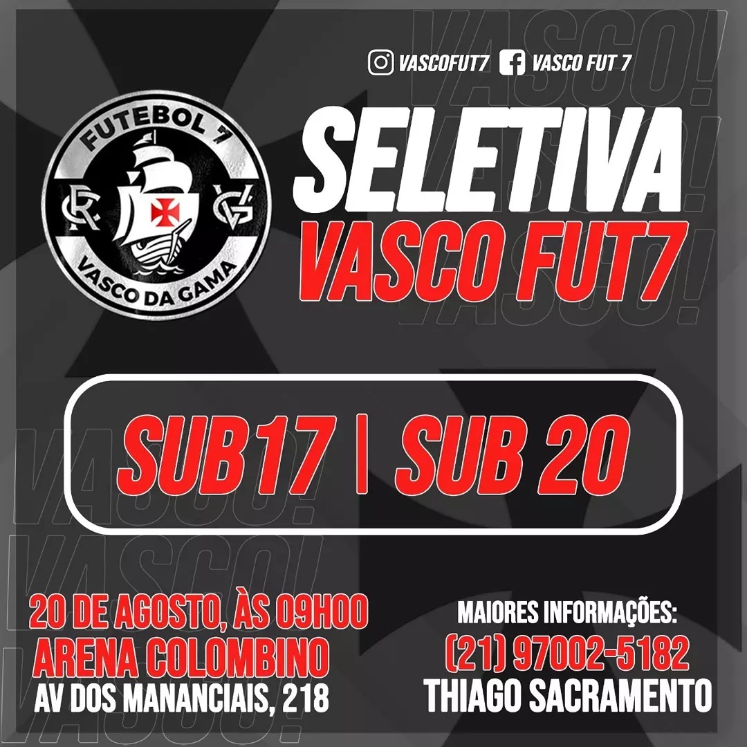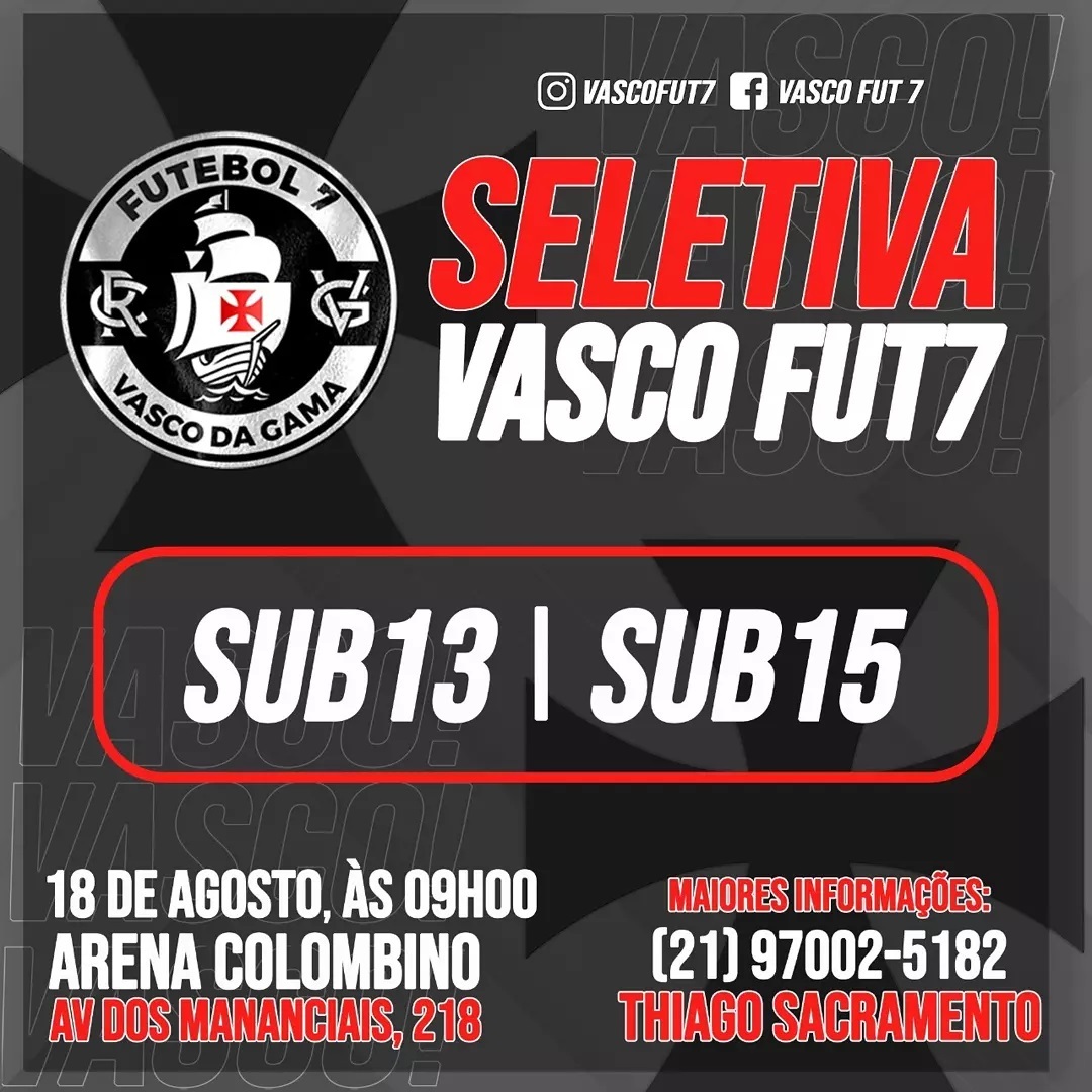 Futebol 7 Base: Vasco realiza seletiva nesta semana para as categorias Sub-13, Sub-15, Sub-17 e Sub-20
