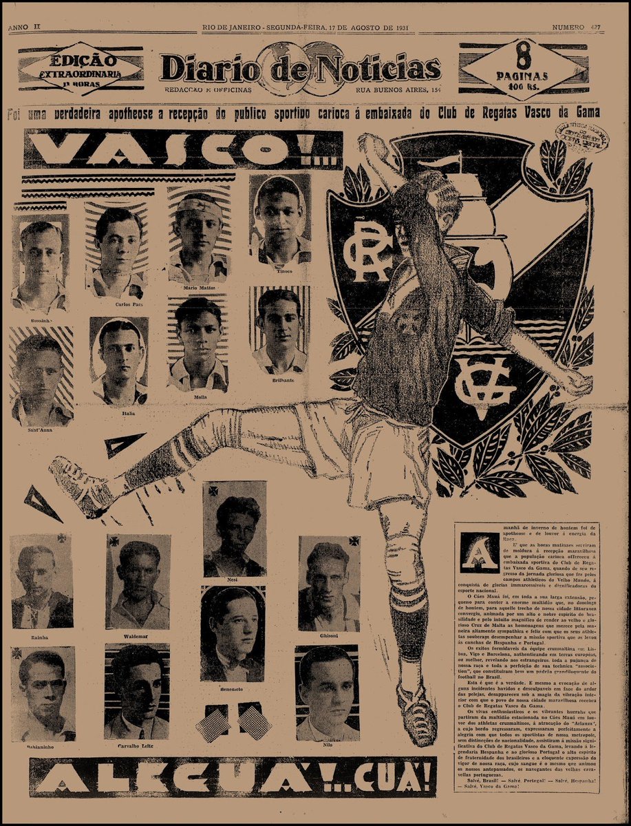 16/08/1931 - A delegação do Vasco retornava da Europa, recebidos por uma multidão de vascaínos no Cais Mauá!