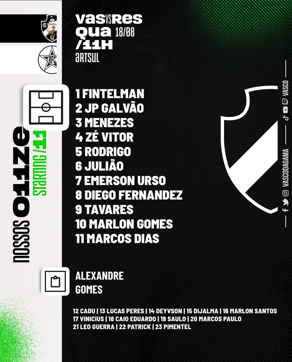 Juniores: Confira a escalação do Vasco para o jogo contra o Resende