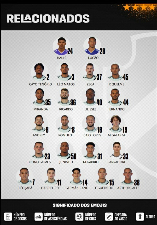 Confira os relacionados do Vasco para o jogo contra o Londrina