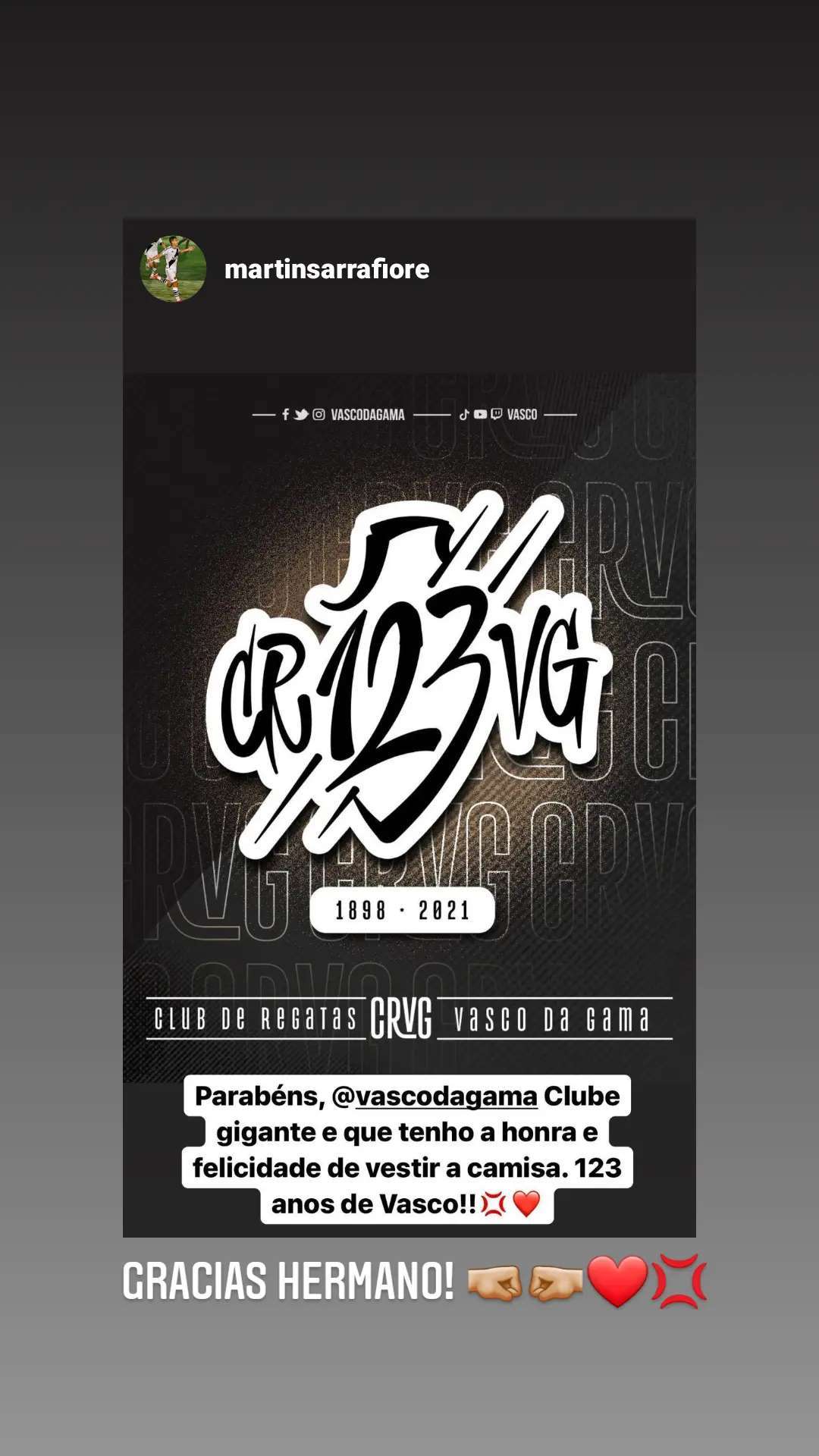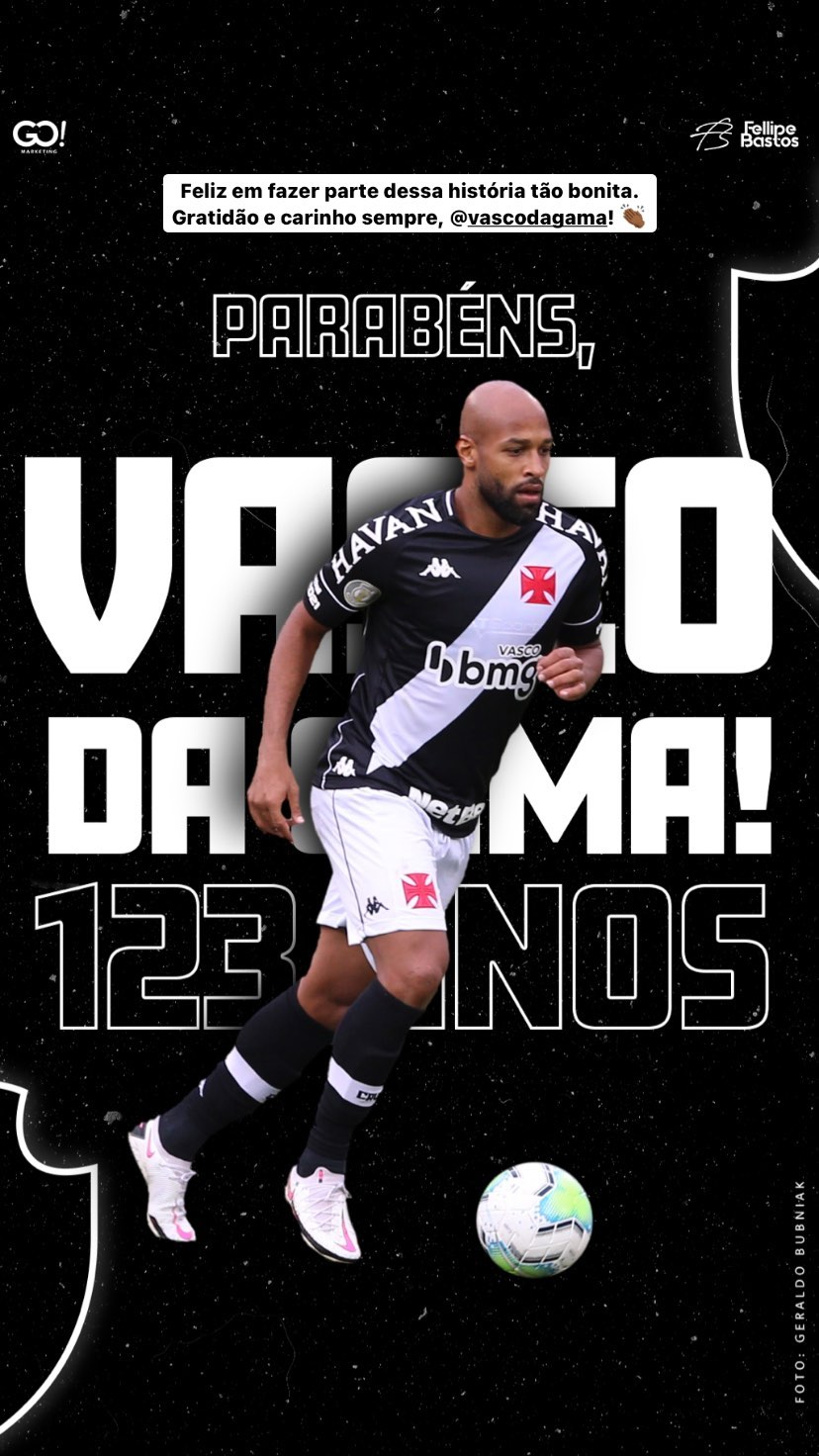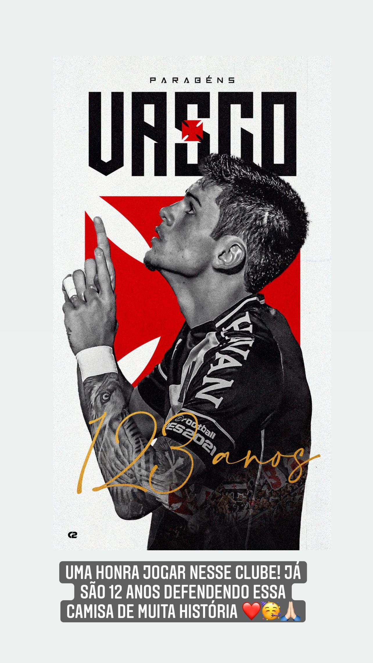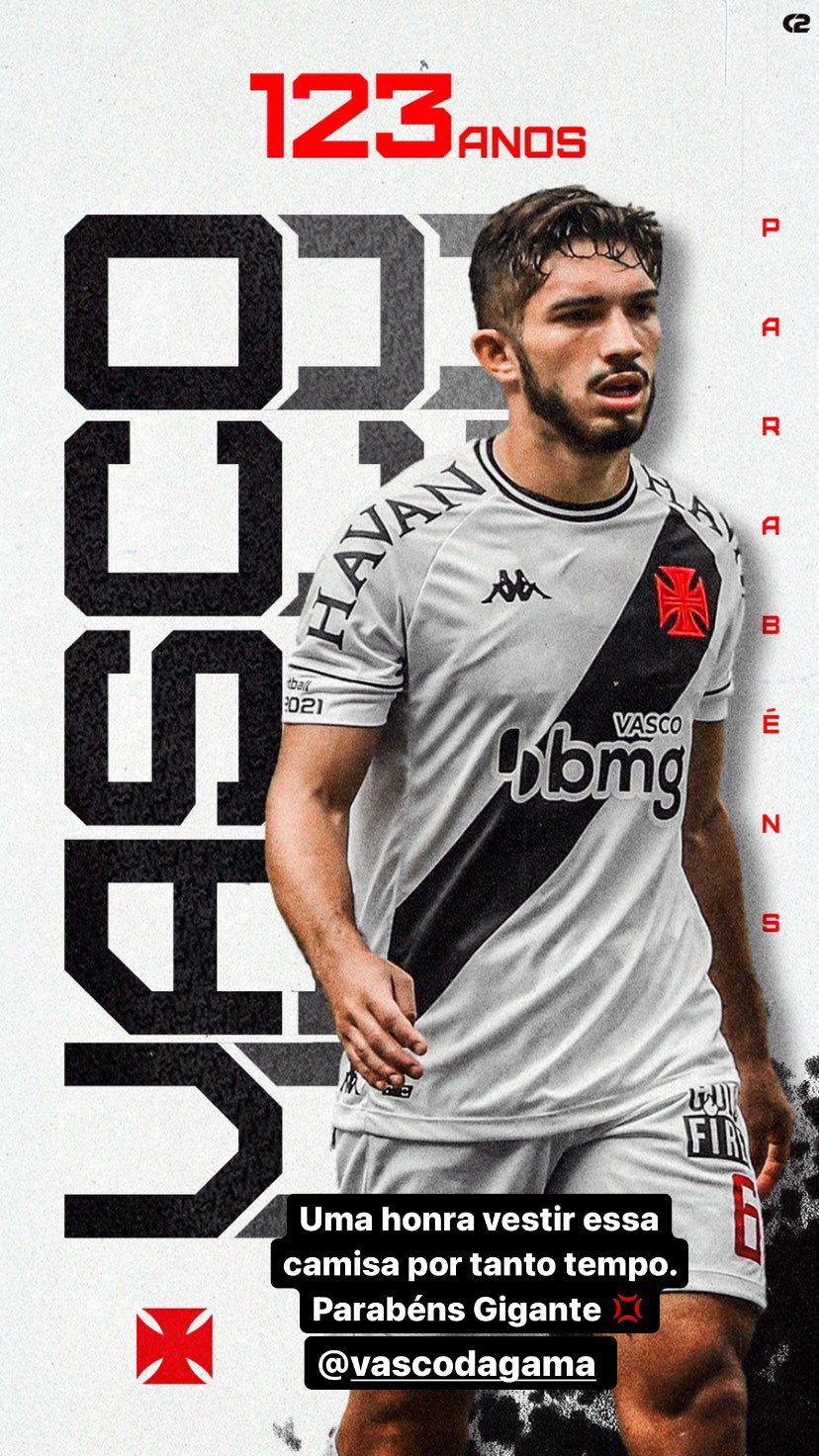 Parabéns, @vascodagama! Me sinto muito feliz e honrado em fazer parte desses 123 anos de história. 💢👏🏻 #Vasco123 #VascoDaGama #GiganteDaColina