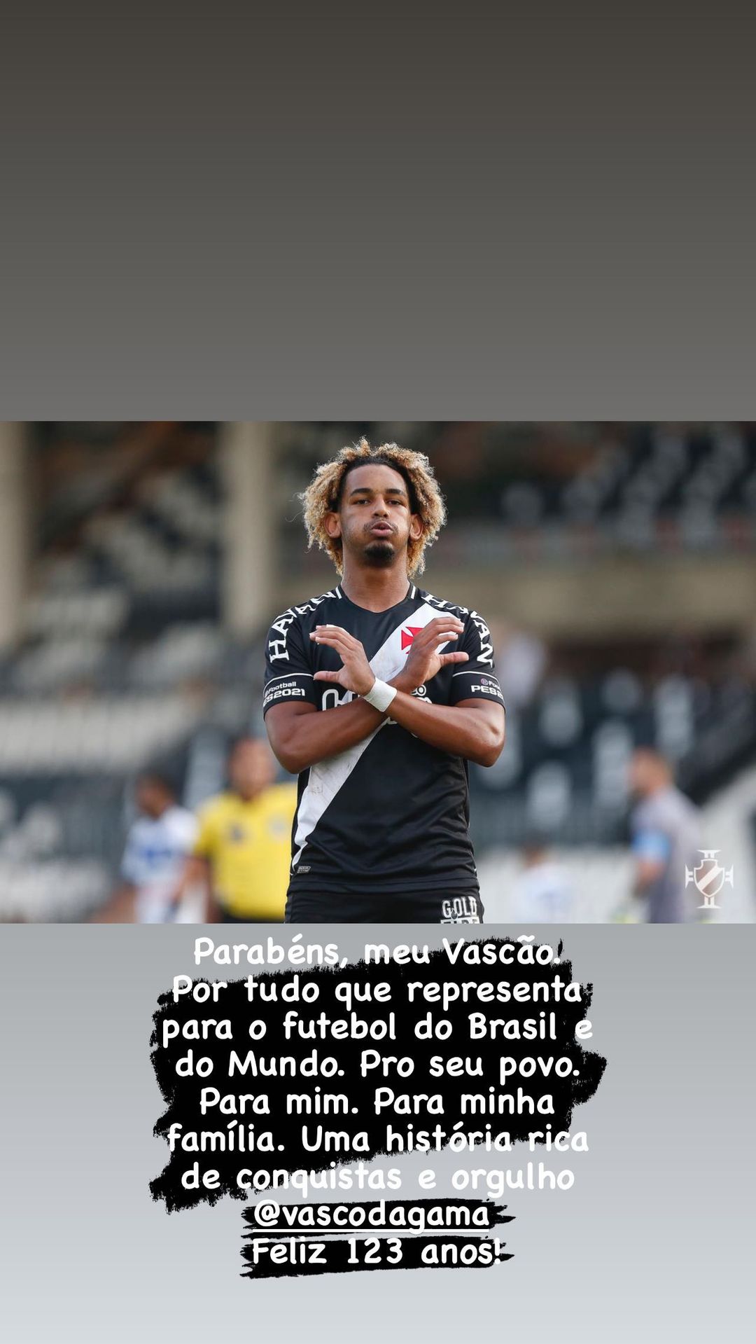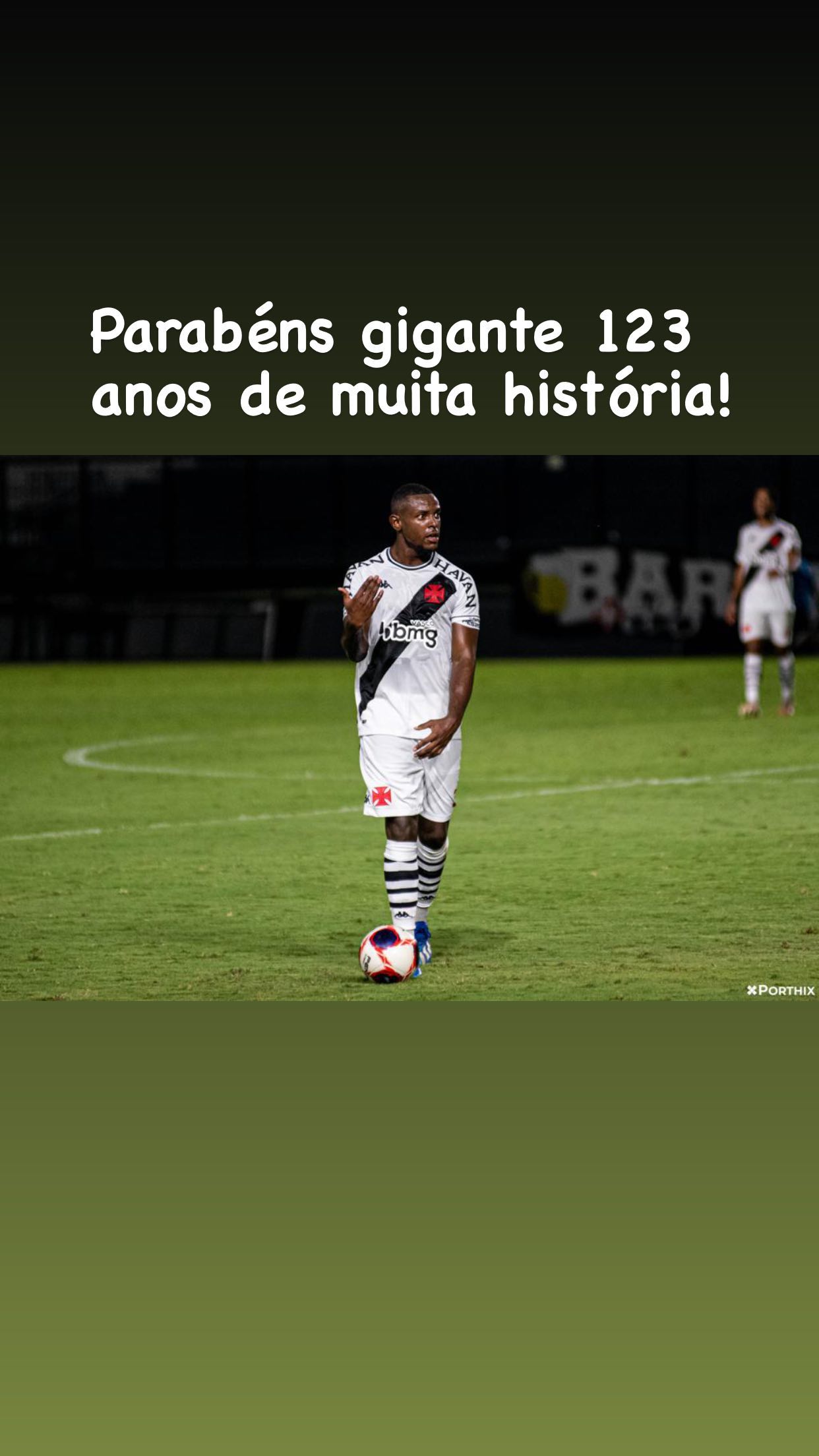 Parabéns @vascodagama pelos 123 anos. Sua história nos orgulha! Desde pequeno frequento e torço nas arquibancadas e agora dentro de campo tenho o prazer ajudar a continuar escrevendo sua história! 🖤🤍