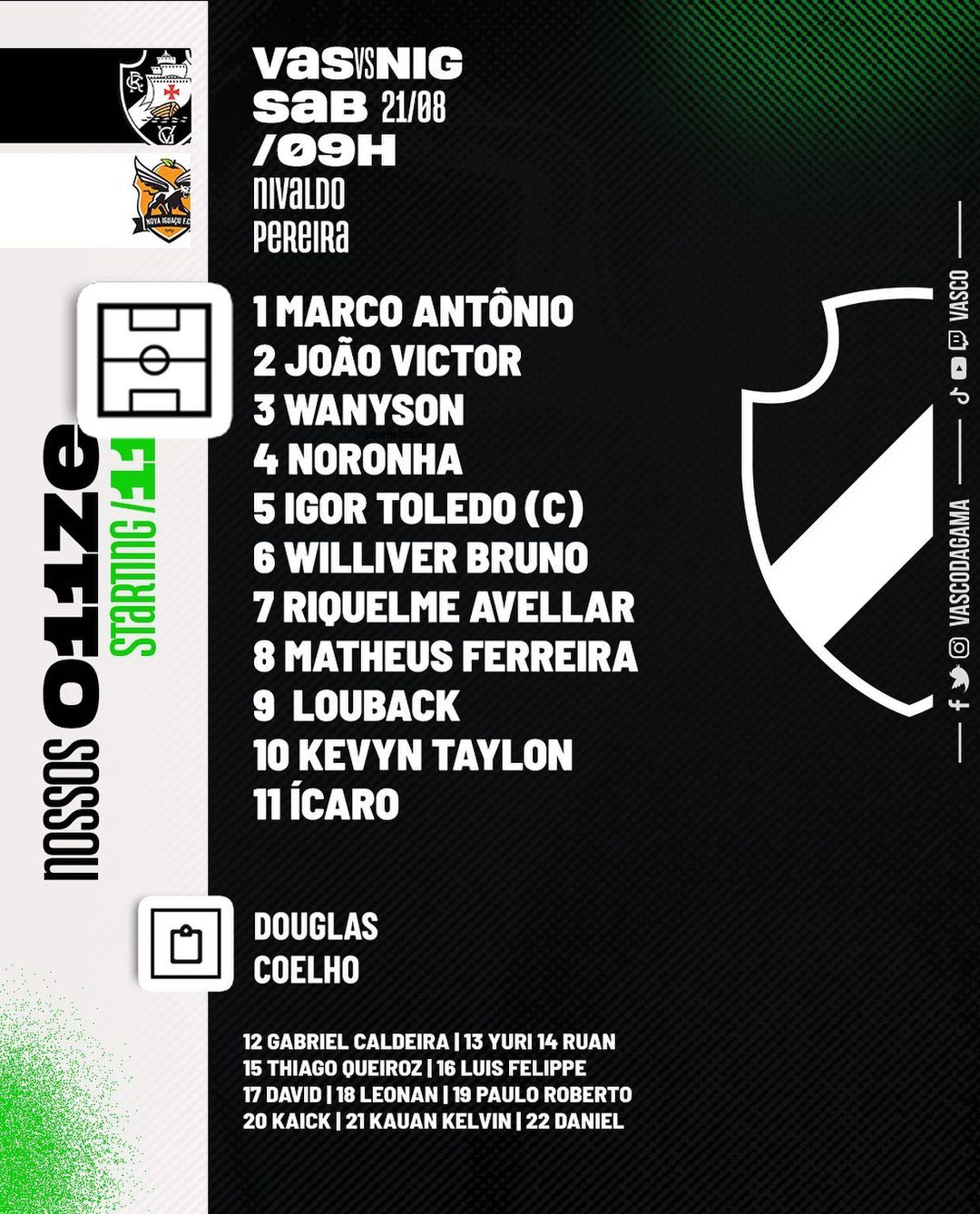Infantil: Confira a escalação do Vasco para o jogo contra o Nova Iguaçu