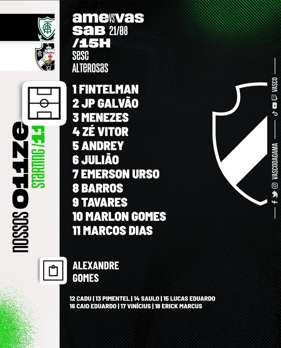 Juniores: Confira a escalação do Vasco para o jogo contra o América-MG