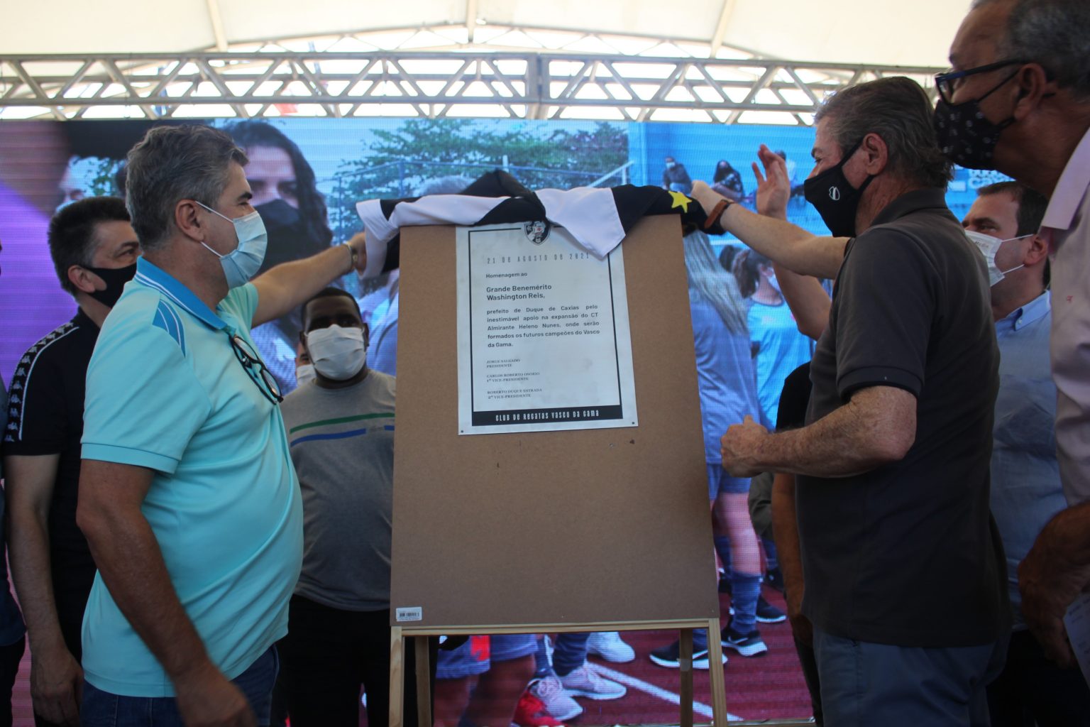 No final da cerimônia o presidente Cruzmaltino presentou o Grande Benemérito Washington Reis com uma camisa oficial do Vasco da Gama e com uma placa em reconhecimento ao seu apoio para viabilizar a expansão do CT.