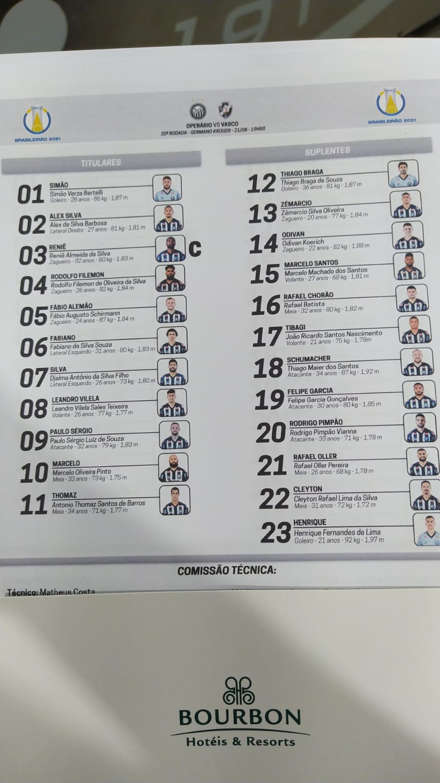 17:33 - Confira a escalação do Vasco para o jogo contra o Operário; Vanderlei e Bruno Gomes são titulares