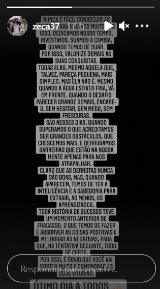 Zeca publica desabafo: 'Nunca é fácil conseguir as coisas. Trabalhamos por muito por isso, dedicamos nosso tempo, investimos'