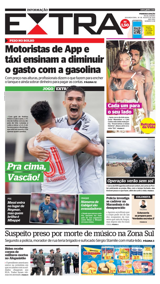 Veja as capas dos jornais após Vasco 2 x 0 Ponte Preta