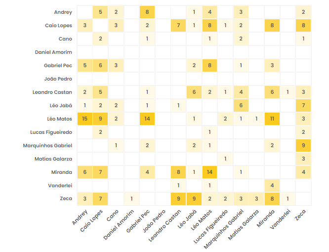 Por isso, trazemos o mapa de interação de passes do Vasco para esta partida. Confira abaixo: