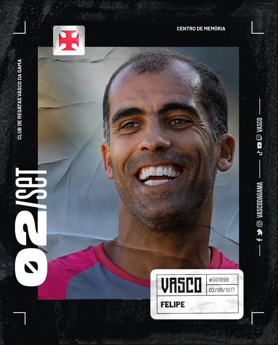 Hoje é aniversário do Felipe. Cria da base forte do Vasco, encantou gerações de vascaínos e conquistou grandes títulos defendendo o Gigante da Colina, como a Libertadores, o Mercosul e os Brasileiros de 1997 e 2000.