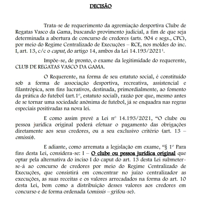 Cabe recurso dos Credores do Vasco no Tribunal de Justiça do Estado do Rio de Janeiro, após a intimação da decisão que será feita nos próximos dias.