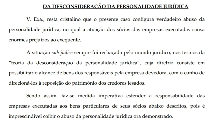 "Dita o art. 50 do CC/02 que "em caso de abuso da personalidade jurídica, caracterizado pelo desvio de finalidade ou pela confusão patrimonial, pode o juiz… desconsiderá-la… (…) Além disso, é de se estranhar que uma empresa, que em sede de contestação alegou possuir mais de 50 anos de tradição no mercado sem problemas financeiros, de uma hora pra outra "suma do mapa" e deixe de peticionar nos presentes autos desde e-fl. 804., há mais de 05 anos", argumentou o Vasco nos autos para que o incidente fosse deferido.