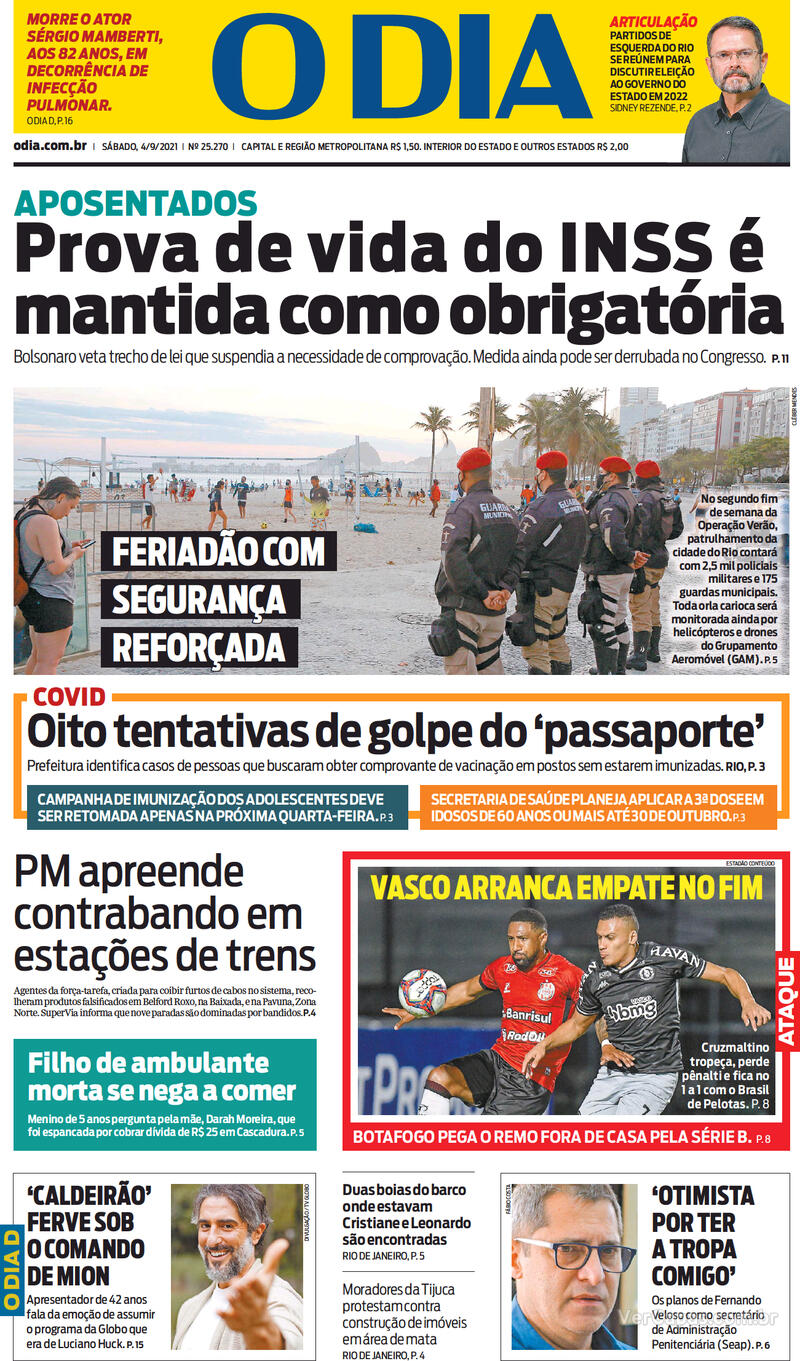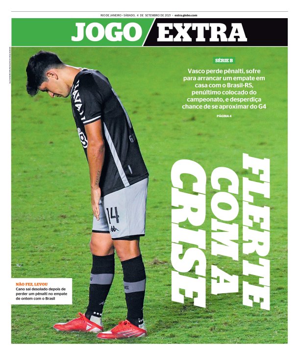 Veja as capas dos jornais após Vasco 1 x 1 Brasil de Pelotas